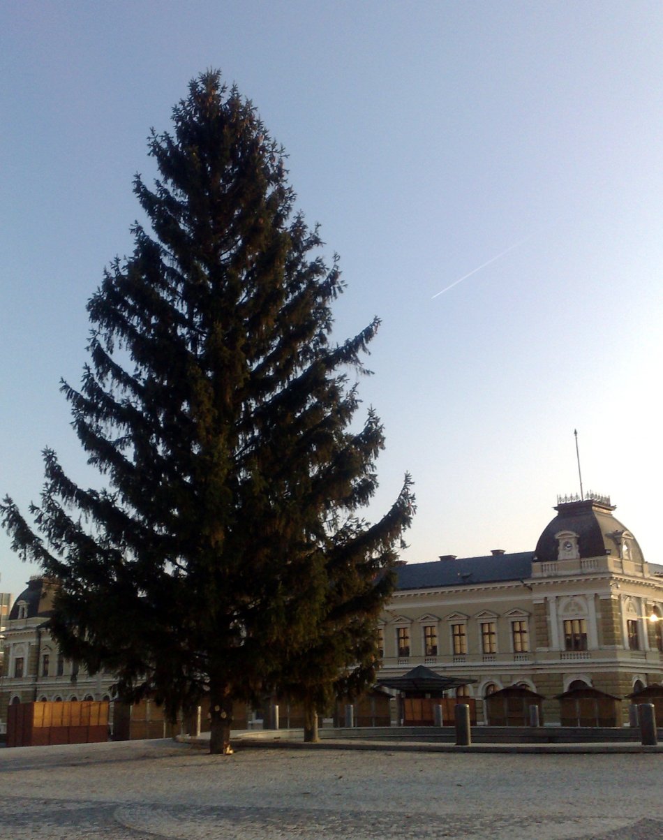 Galéria k článku Na Svätoplukovom námestí už stojí stromček. Stavajú sa aj stánky