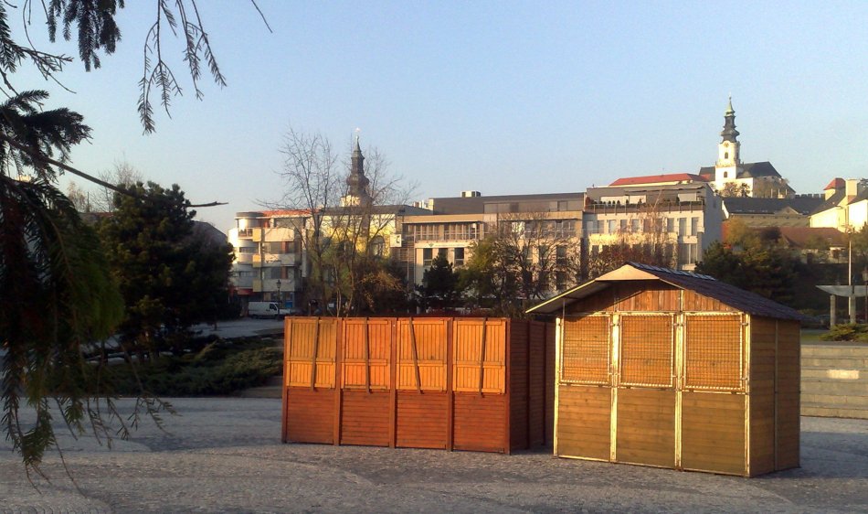 Galéria k článku Na Svätoplukovom námestí už stojí stromček. Stavajú sa aj stánky