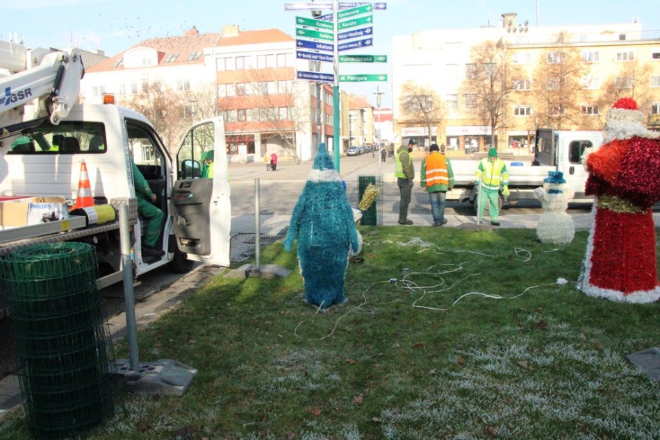 Galéria k článku Vianoce sa blížia: V centre mesta inštalujú výzdobu, FOTO