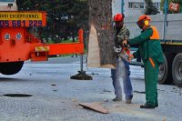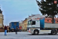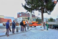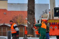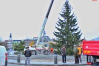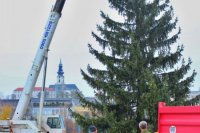Osádzanie vianočného stromčeka na Svätoplukovom námestí