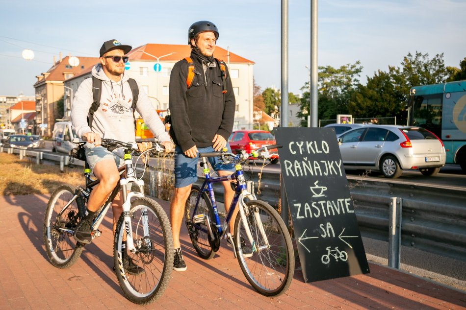Galéria k článku Šliapnuť do pedálov sa im oplatilo: Cestou mestom čakali cyklistov chutné raňajky