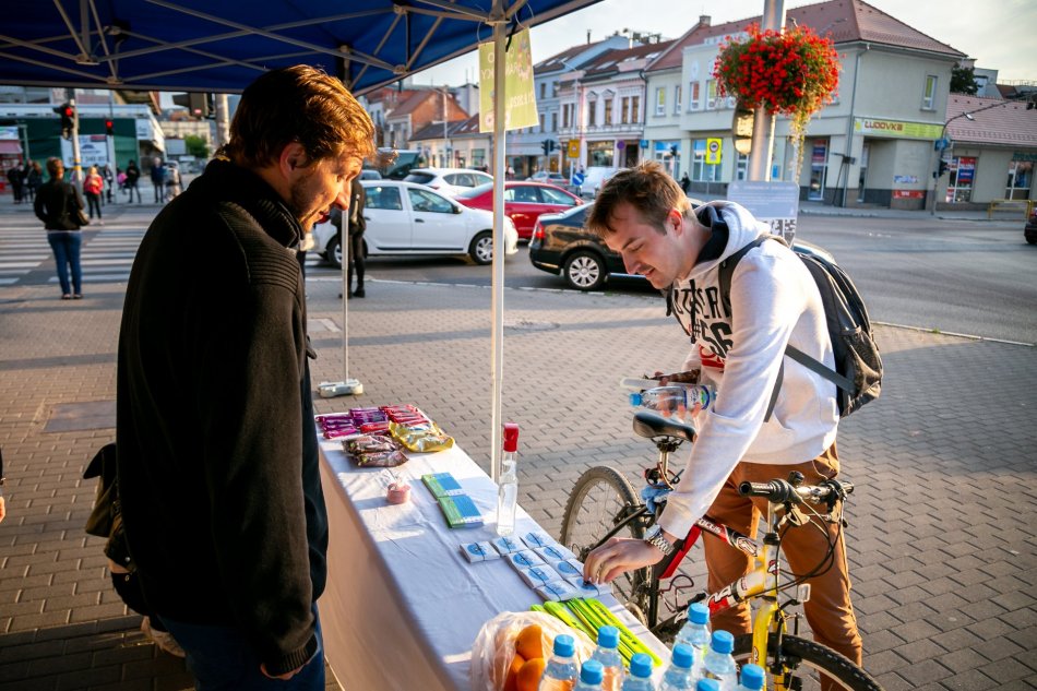 Galéria k článku Šliapnuť do pedálov sa im oplatilo: Cestou mestom čakali cyklistov chutné raňajky