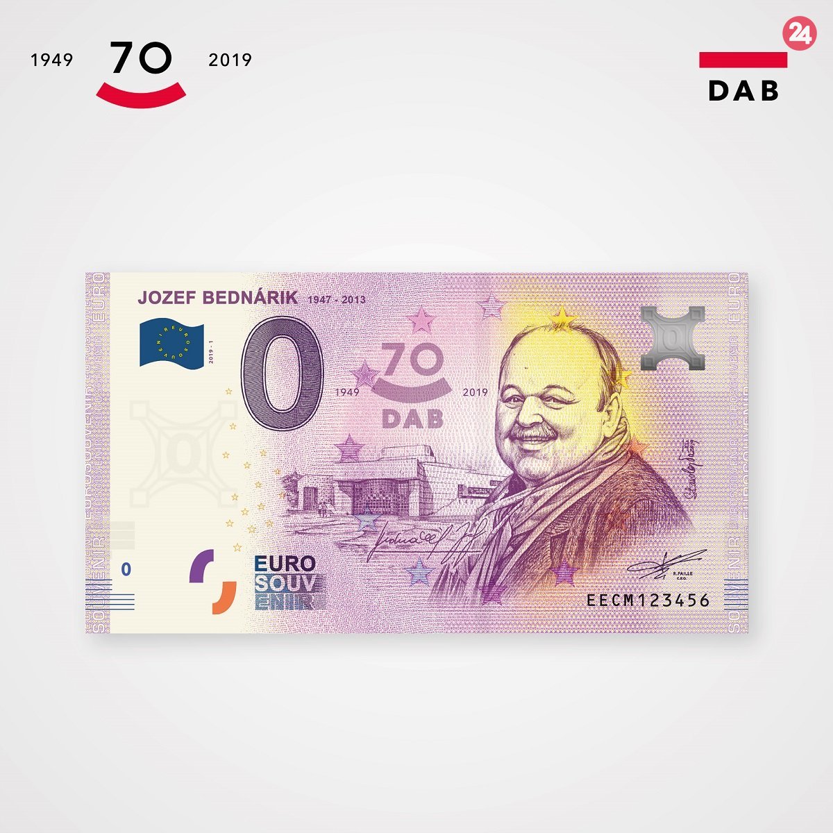 Galéria k článku Vzácny kúsok do zbierky: Jozef Bednárik zvečnený na unikátnej eurobankovke DAB
