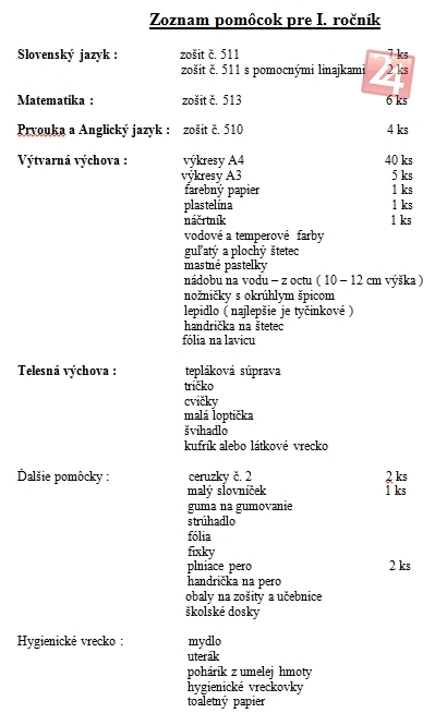 Zoznam pomôcok pre prváčika