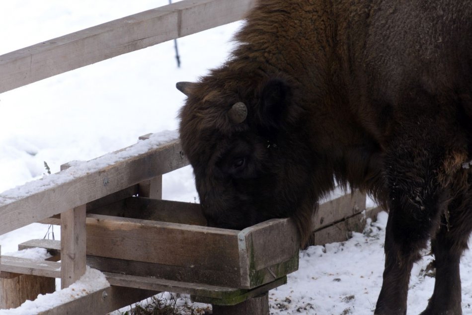 Galéria k článku Užite si pohľad na impozantné zvieratá: Zubria zvernica láka aj počas zimy