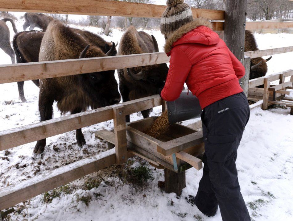 Galéria k článku Užite si pohľad na impozantné zvieratá: Zubria zvernica láka aj počas zimy