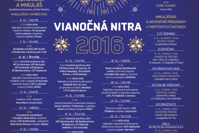 KOMPLETNÝ PROGRAM: Vianočné podujatia na námestí v Nitre a v mestských častiach