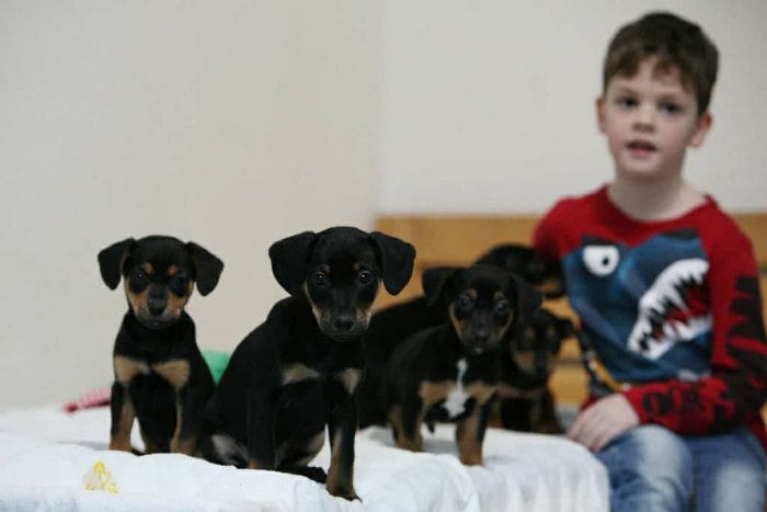 V treskúcej novembrovej zime sa našla v lese na váhu fenočka jazvečíka s 5 iba párdňovými šteniatkami. Šteniatka majú dnes už 2 mesiace a nové domovy hľadajú ešte dva psíčky a dve fenky. Maminka aj jedna sestrička už sú adoptované. Psíčky sa volajú MAŤKO, KUBKO, fenky majú mená LIENKA, LÍVIA.