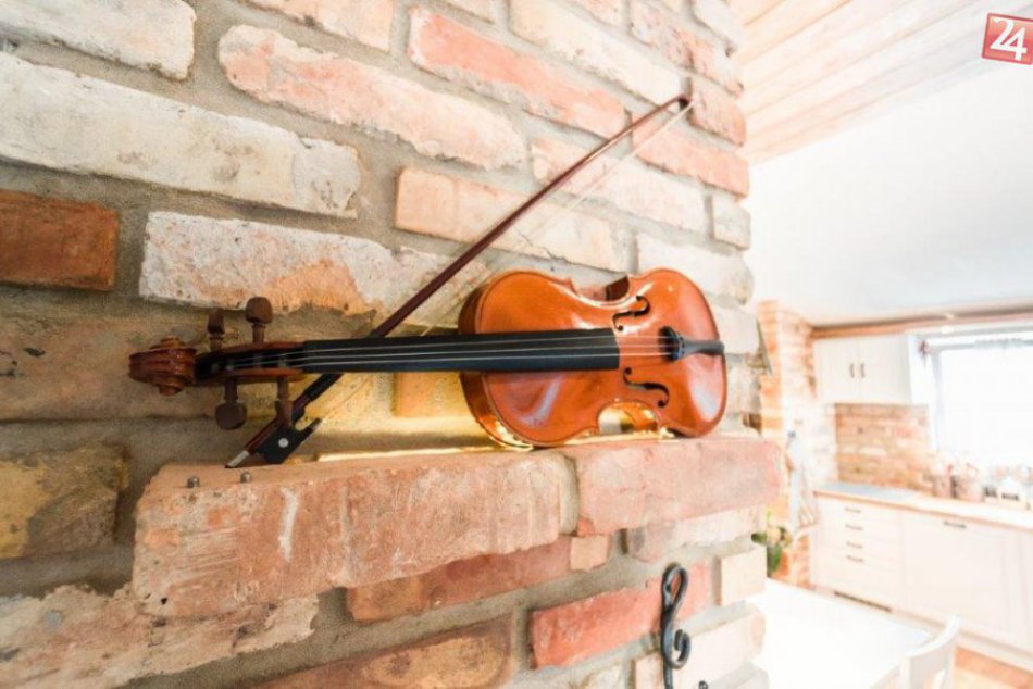 „Náš dom je v úplne inom štýle, ako bývajú ostatné moderné drevostavby, chceli sme ho urobiť tak po svojom,“ vysvetľuje Petra. Ako ďalej dodáva, musela sľúbiť manželovi, že to nebude príliš „kvetinkové“. V každom prípade sa však zhodli na tom, že chcú útulný interiér s prírodnými materiálmi a detailmi, ktoré budú mať pre nich osobný význam. V kombinácii tehla – kameň – drevo – kov tak vytvorili priestor, ktorý dýcha tradíciou a Stredomorím. „Máme veľa zmien oproti typovému domu, ale vždy sme ich vopred konzultovali a odsúhlasili, ešte pred tým, ako išiel dom do výroby,“ dodáva majiteľka. Lampy, úchytky, garniže a konzoly si dali ukovať u kováča na mieru. Všetko je v jednom štýle, ale každý kus je trochu iný. Stredom domu vedie stena z fermacellu, ktorá oddeľuje dennú zónu od spální. S pomocou tehlárov ju obložili originálnymi starými tehlami narezanými na požadovaný rozmer. Je to výrazná dekoračná dominanta v interiéri, ale zároveň aj tepelno – akumulačný prvok. Ako vraví majiteľka, tá stena doslova nasáva teplo.