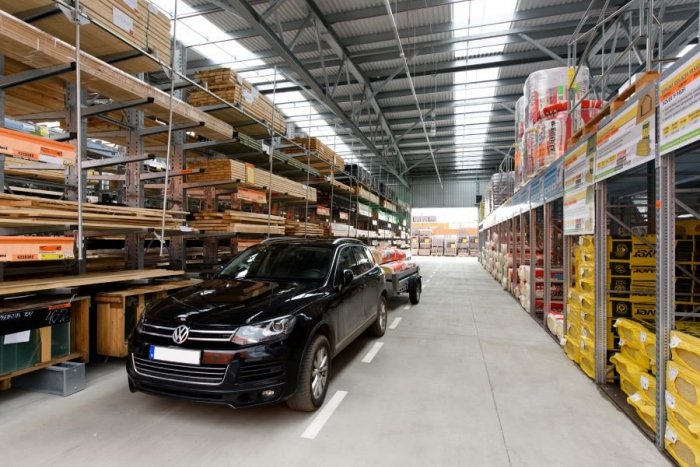 Zóna Drive In je prístupná vozidlom tak ako profesionálom, ktorí prichádzajú vyzdvihnúť veľké objemy tovaru, tak aj bežným zákazníkom. Kto by si nechcel vyskúšať jazdiť medzi regálmi? „Ťažké stavebné materiály, ako je drevo, murovacie materiály, omietky, sadrokartónové dosky, ale aj izolácie a zámkové dlažby a pod. si zákazníci naložia komfortne priamo do auta. Ušetria tak nielen čas, ale aj sily, ktoré môžu následne venovať svojmu projektu,“ pokračuje Martin Taksonyi.