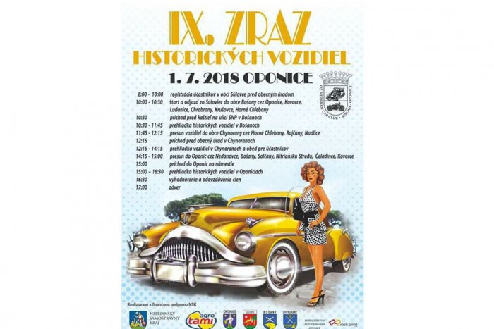 Letná sezóna je tu a pre nadšencov historických vozidiel je to čas prevetrať svoje veterány. V poradí 9. ročník zraz historických vozidiel sa bude konať v Oponiciach v nedeľu 1. júla.