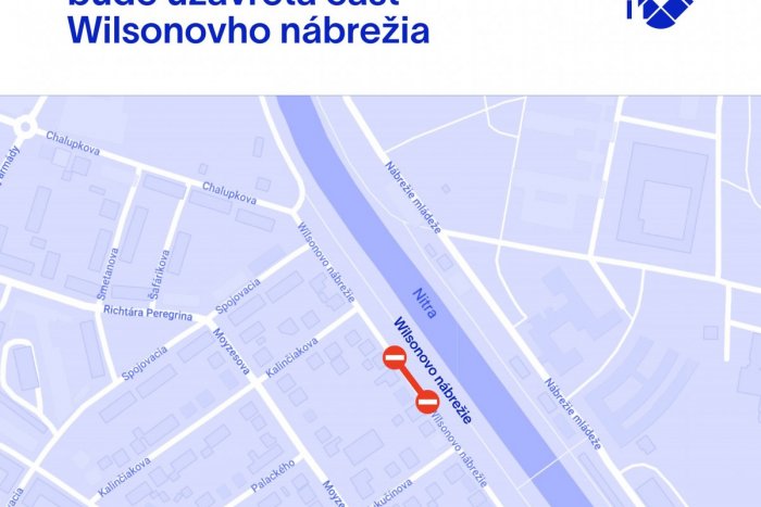 V piatok 16. decembra bude uzavretá časť Wilsonovho nábrežia v Nitre. Ide o úsek medzi Kalinčiakovou a Kukučínovou ulicou. Obmedzenie potrvá len v dopoludňajších hodinách. Informuje o tom mesto na svojej stránke.