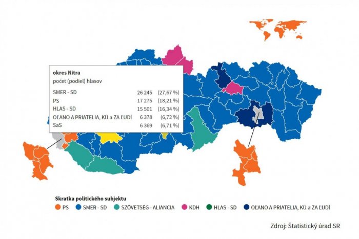 Výsledky parlamentných volieb v okrese Nitra: Väčšina obcí volila Smer-SD